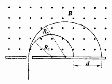 • 6.35 如图所示,一束氯原子的同位素离子(它是含有质量为35 u和37 u的混合物,而1 u=1.67× 102710^{-27} kg)垂直进人 B=0.5 T的磁场,所有离子具有2.0× 10510^{5} m·s-1的相同速率,在磁场中偏转180°后,这些离子打在照相底片上,试求离子束在底片上分离开的距离。