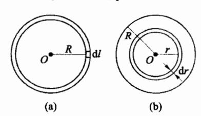 求:(1)质量为m、半径为R的均质细圆环绕通过圆心且垂直环面的转轴的转动惯量:(2)质量为m、半径为R的均质圆盘绕通过圆心且垂直盘面的转轴的转动惯量。