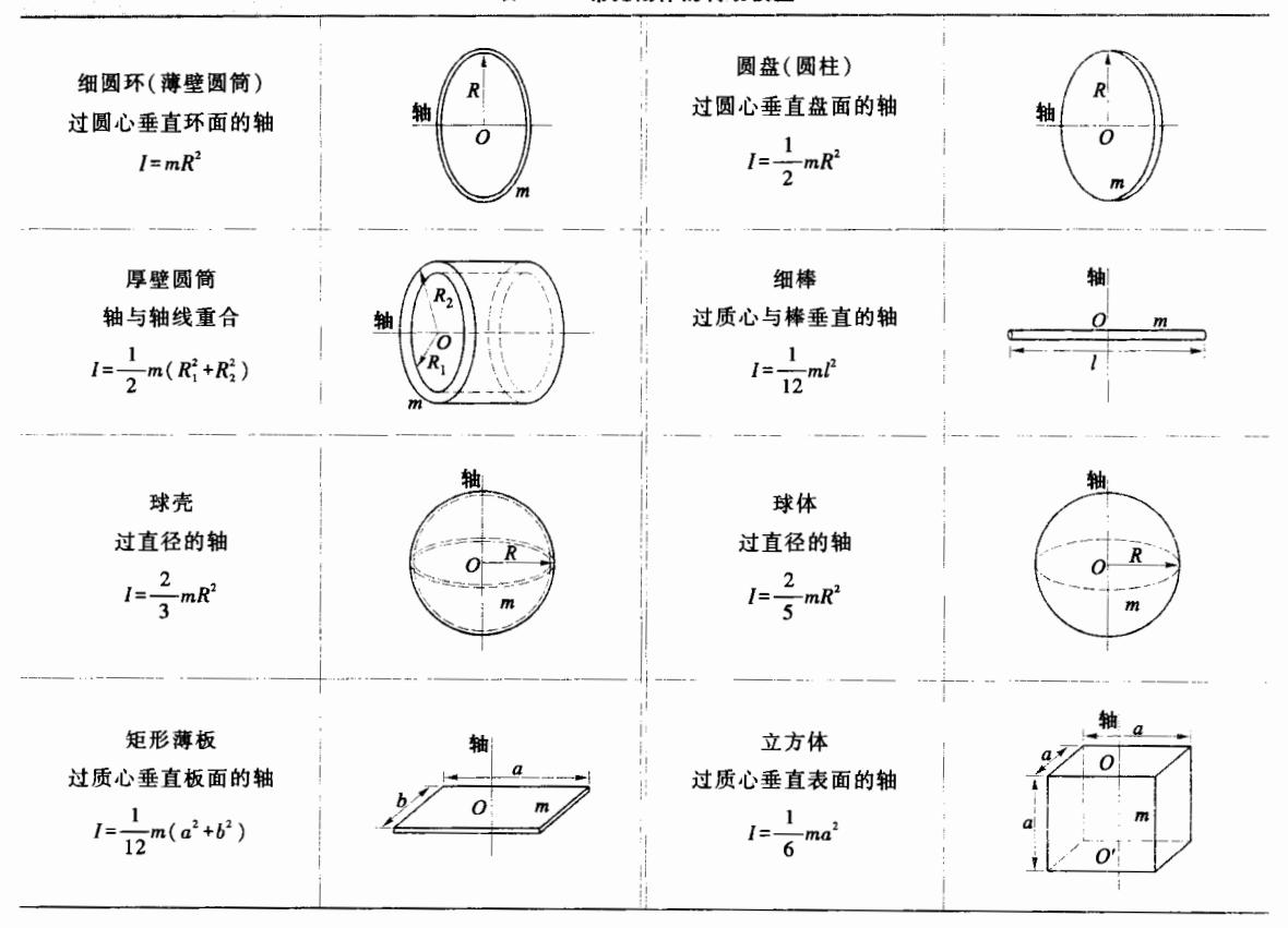 表 2-2 常见刚体的转动惯量