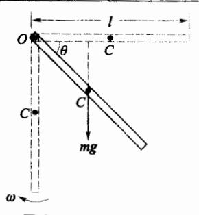 将积分所得 W 的值及细棒转动惯量 I=ml2/3I=ml^2/3 代人,解出 ω=3g/l\omega=\sqrt{3g/l}