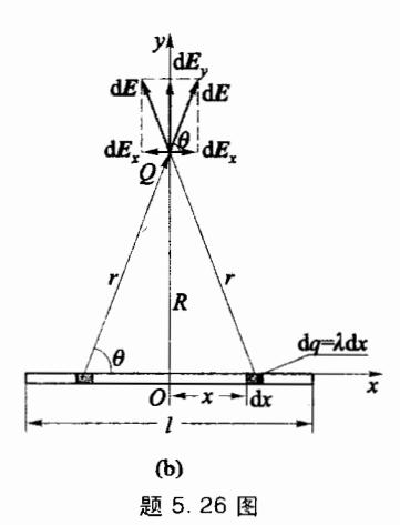 • 5.40 如图所示,有一长为1、带电荷量为0的均 匀带电杆,将它水平放置,求: