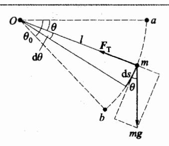 式中, dr 为小球沿曲线弧切向的微小位移,其大小为 dr=ds=ldθ|dr|=ds=ld\theta ,绳中张力与位移垂直,做功为零,只有重力沿切向的分量做功。