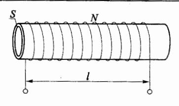 求一密绕螺线管的自感系数。设螺线管长 l=15 cml=15~{\rm cm} ,共 绕 N=500 EN=500~{\rm E} 匝线圈 ,其面积 S=2 cm2S=2~{\rm cm}^2 ,如图 713 M7-13~{\rm M} 示。