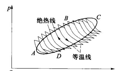 图 4-19 所示的循环过程可认为是由 ABC 和 CDA 两个可逆过程构成,因此式(4.7.2)可改写为