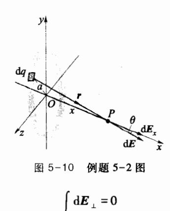 解:如图 5-9 所示,选取直角坐标系,带电直线与x 轴重合,y 轴与带电直线垂直,坐标原点选在这段直线的中点。