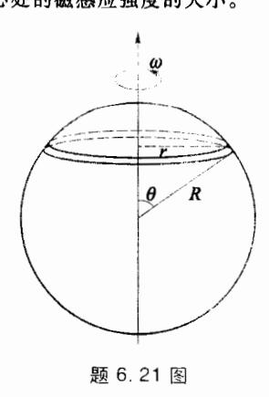 6.21 如图所示,一半径为 R 的球面上均匀分布 时,求在球心处的磁感应强度的大小。